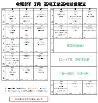 2月5日(木)、令和7年度給食献立表2月をアップしました。