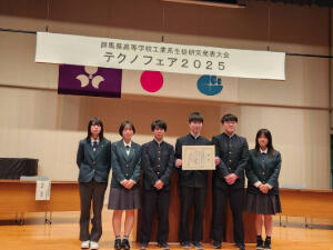 12月1日(月)、工業化学科3年課題研究班がテクノフェアに参加し、優秀賞を頂きました。